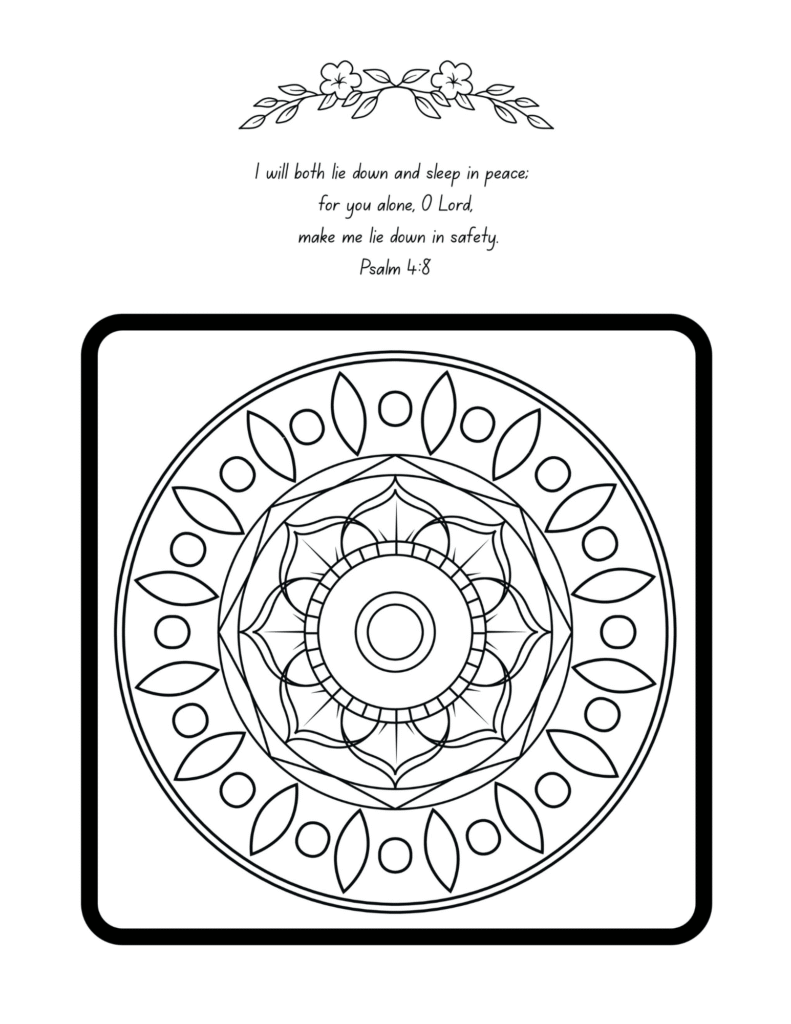 Each page has a beautiful mandala to color as well as a bible verse to read and think about.